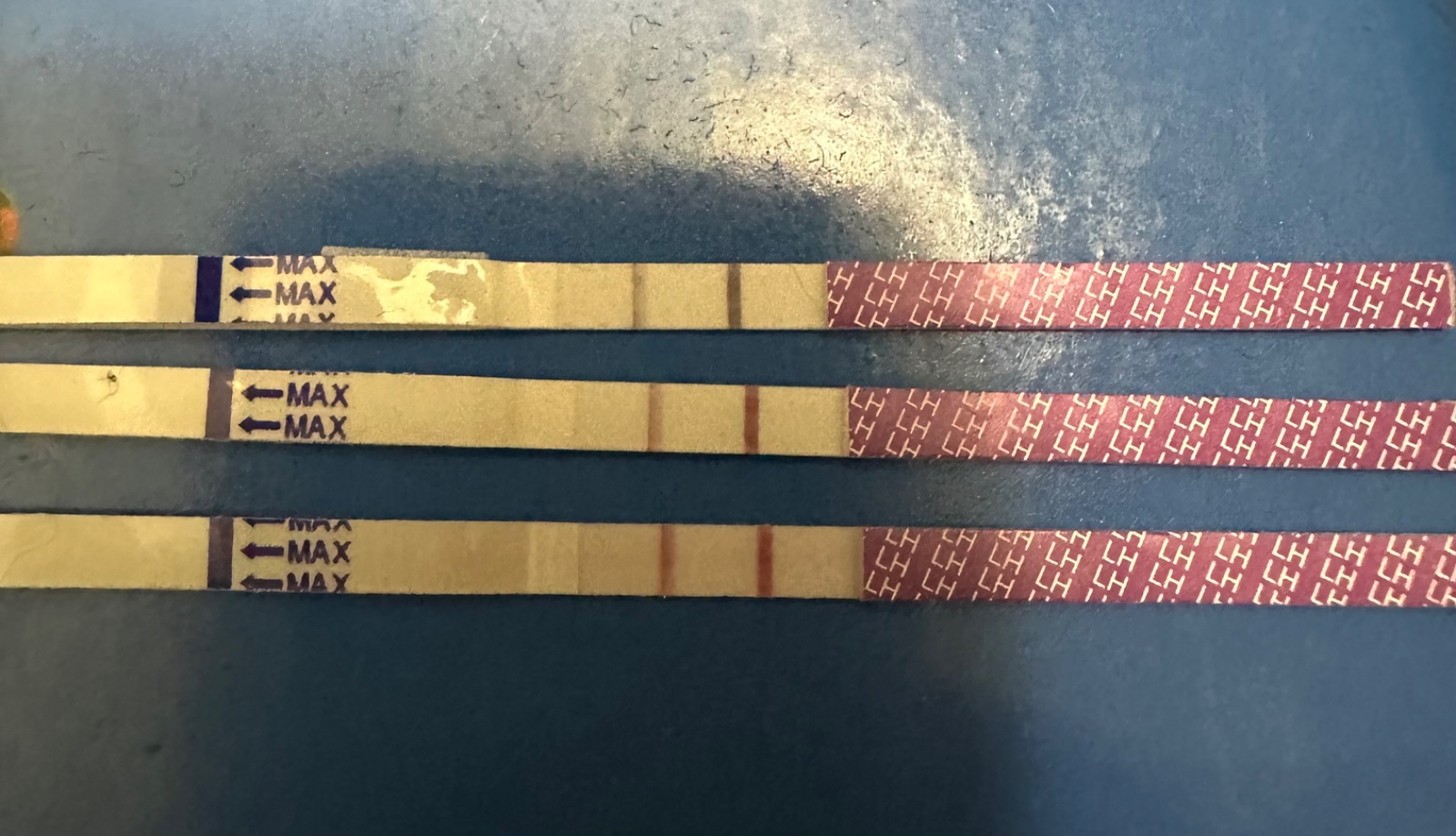 @natali1996 Je to málo nasvícená fotka, ale i ten spodní mi nepřijde pozitivní. U ovulačních testů musí být buďto stejně silná nebo silnější čárka než kontrolní. A přijde mi, že ještě 1-2dny chybí.