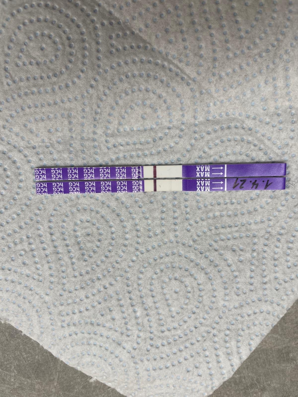 Druhá možnost je méně pozitivní - jde o zvýšení hcg před příchodem MS, možná i biochemko, ale to by bylo vybarvení výraznější. Případně je tu vždycky možnost vadného nebo špatně provedeného testu...