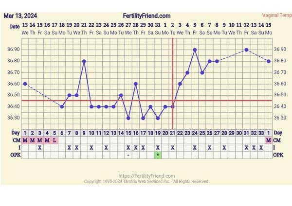 Podle mě málo informací, hodně vymechaných teplot, další cyklus se snad bude dařit lépe. Když není čas na měření teploty ráno, lze sledovat během dne aspoň sekundární znaky jako hlen a poloha čípku. Jinak já mívám teploty v první fázi obvykle nízké mezi 36.15 až 36.40, po ovulaci zase zvýšení od 36.55 až 36.80, zatím jsem nikdy neměla 37 a víc bez toho, abych nebyla nemocná nebo večer předtím nepařila.