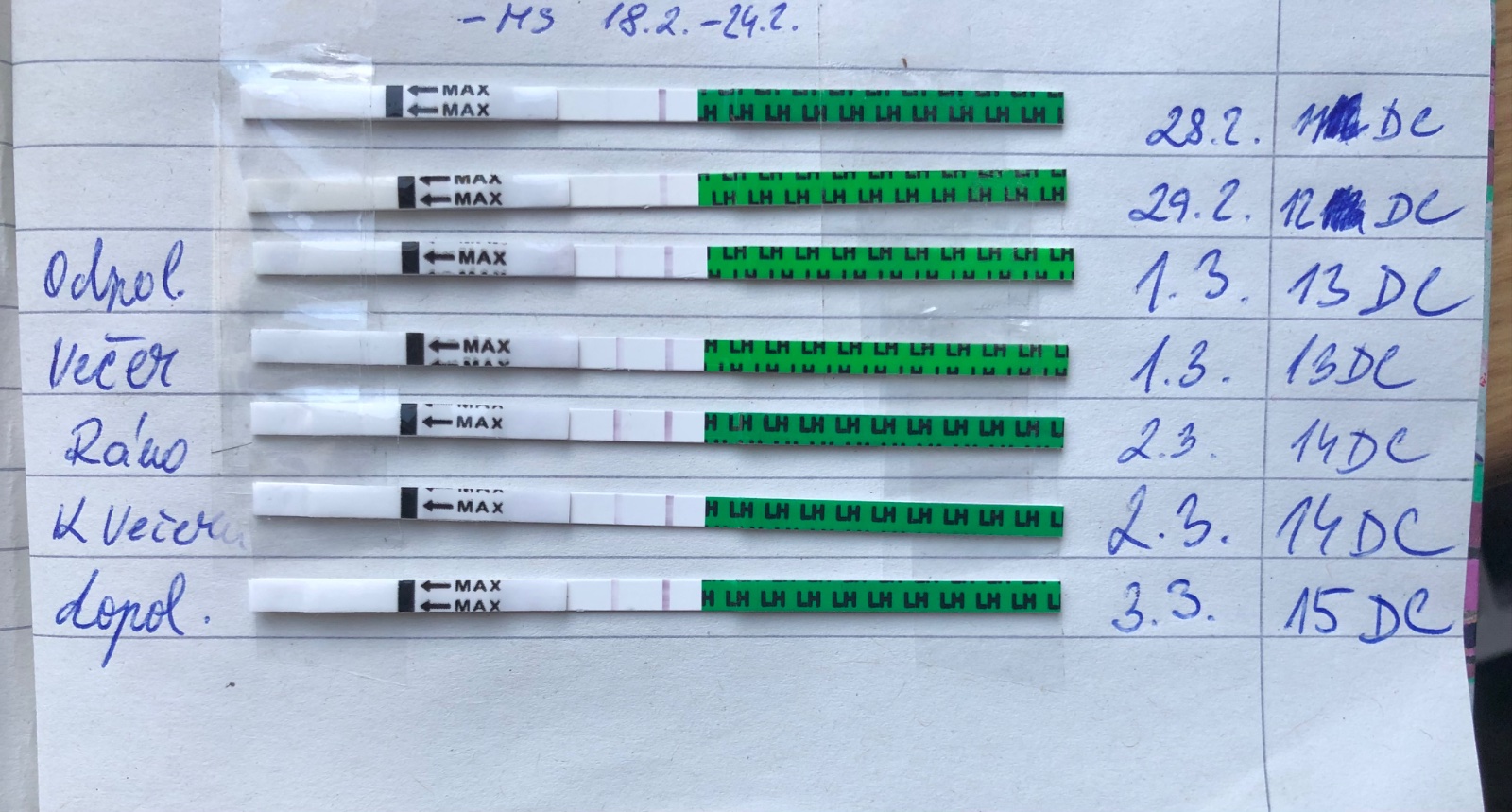 Řekla bych, že pozitivní test je 2.3. ráno, takže ovulace nejspíš 3.3. To je dobrá šance, že by to mohlo vyjít 🙂