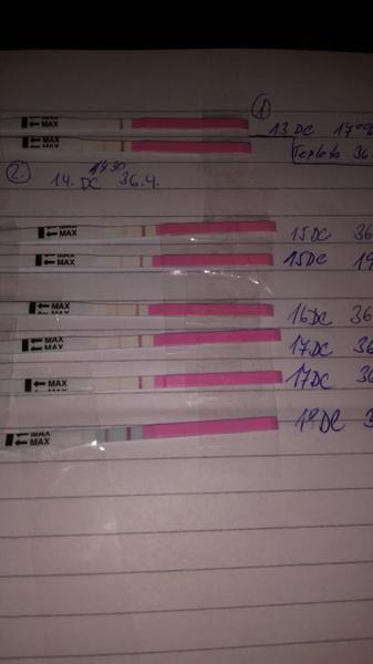 Čárka ti sílí, podle mě ovu příde.. ale podle mě pozitivní test bude až zítra... zatím je čárka slabší než kontrolní🙂 35 není dlouhý cyklus🙂 ten je ještě v normě🙂 já mám tak 45 dní.. to je dlouhý cyklus🙂