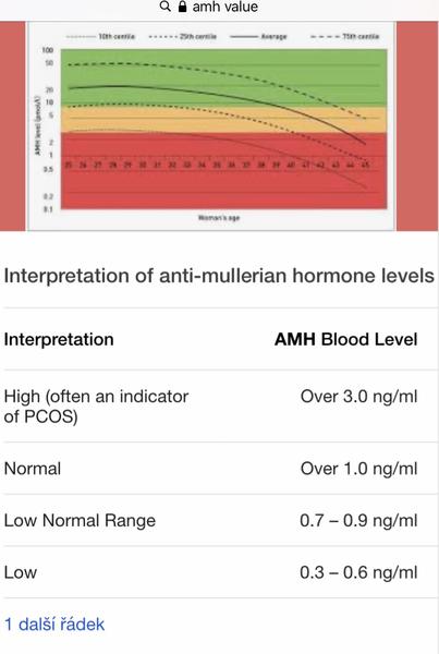 @pupik26 Hlavně nestresovat, když to nebude super a poradit se s doktorem 😉. Už jsem četla i o případech, kdy s hodnotou 0,1 paní otěhotněla přirozeně. Mně dr. řekl, že prostě vajíček je málo, bude více anovulačních cyklů než s ovulací, ale klidně za 2 roky může 1 ovulace proběhnout přirozeně. Dnes se už dá řešit spousta věcí.
