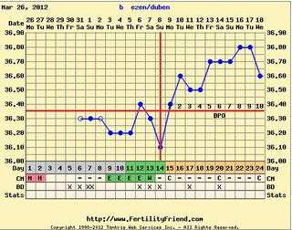 Holky, ten můj graf je tento měsíc nějaký úplně mimo, myslela jsem, že ovulace byla v pátek, protože teplota šla v sobotu nahoru, ale pak šla v neděli zase dolů a od té doby jde zas pomalu nahoru.... 😕 Kozel aby se v tom vyznal 😀