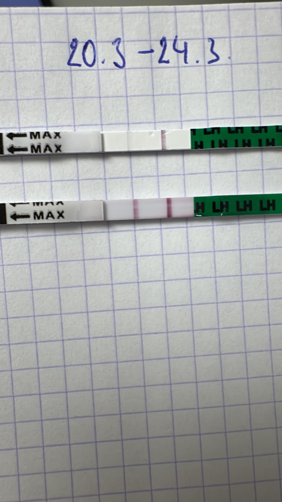 Zdravim. Rozhodla jsem se v tomto cyklu udelat ovulacni testy na presnejsi dny kdy jsou plodne dny. Cykl zacal 20.3-24.3. Dnes jsem 11 den cyklu. Bezne myvam 30-32 denni cykly. Chci se poradit jesli tento dnesni test vypovida, ze jiz dnes a pozitri pohl styk by pokryl plodne okno? A sance tam na teho je?🙏🏼😂