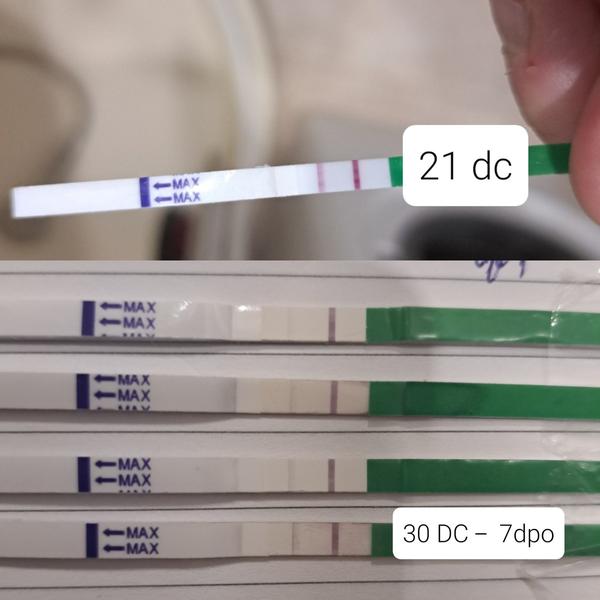 Já měla úspěšné ovulace 23dc a 29dc, mám tedy cykly nepravidelné a často dost dlouhé, ale ovulace byla potvrzená testy a pak i tím, že jsem byla fakt těhotná 😁 a v obou případech, když jsem zkusila ovulační test na úplném začátku těhotenství, tak sílil a pak byl i krásně pozitivní.