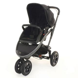 Má pevnú konštrukciu so 4-mi nafukovacími kolesami a nastaviteľnú opierku hlavy pre maximálne pohodlie dieťaťa.