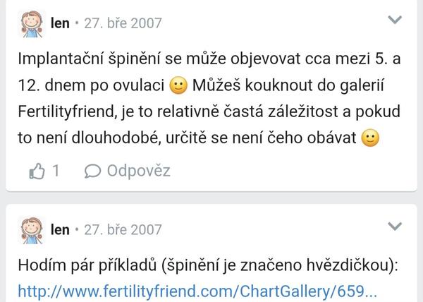 @salmina Snažili jsme se dohromady 6let, myslím že vím kdy bývá nidace, mimo jiné i lidi na to studovaný. 😀 paní měly asi později ovulaci.