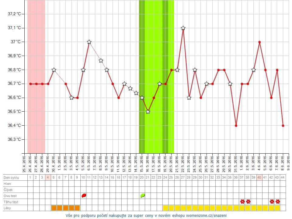 No, sice z jednoho grafu se nedá udělat žádný závěr, ale vzhledem k prudkému poklesu teploty bych menstruaci očekávala každou chvíli... No, ale cykly máš hodně dlouhé. To máš po vysazení antiko nebo "normálně"?