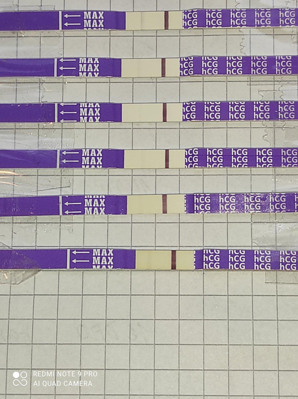 chtěla bys se zeptat Vás zkušených s injekcí ovitrille. Je nutné, aby těhotenský test po injekci nejdřív byl 100% negativní bez jakéhokoliv dušíka, aby se pak případně mohla ukázat těhu čárka a nebo nemusí úplně zmizet a jen se napojí a místo toho začne sílit. Jsem 13 den o zavedení ovitrille. Od shora první tři je ještě ovitrille a krásné slábnul. Předposlední je 11DPO a poslední je s dnešního rána 12 DPO. Myslíte, že se zadařilo? Nebo to může být ještě ovitrille jsem 31 DC do MS dva dny.