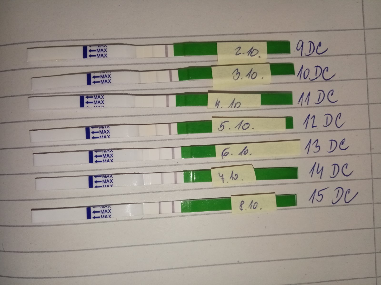 Ahoj, jsem tu nová tak snad dělám vše správně. Potřebovala bych poradit dělám si ovu test, nejdřív jsem myslela, že je ovulace 5.10. 12DC, pak to zesláblo a včera 7.10. 14DC mi test ukázal znovu silnější proužek.Tak sem si řekla udělám ještě dnes 8.10. 15DC a vyšla ještě silnější než včera.Tak teď nevím co si o tom myslet, dělám si testy poprvé