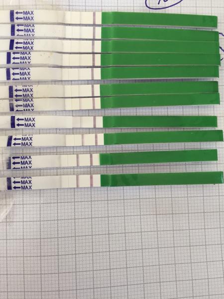 Testovací čárka by měla být silnější než kontrolní, nebo alespoň stejně silná. Tak zkuste otestovat ještě zítra. 🙂