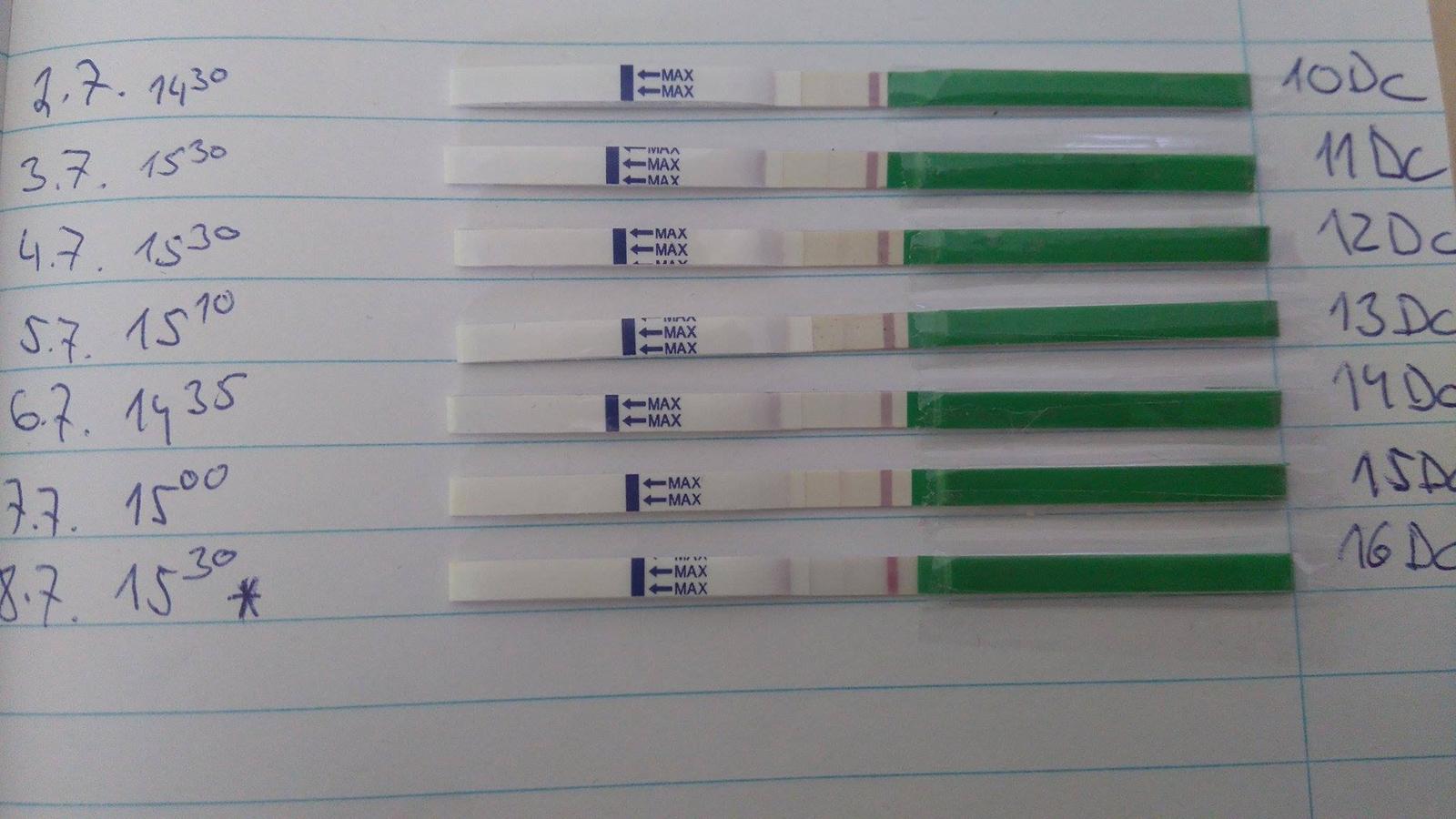 Ovulaci mam v dobe 11. - 13 dne dc. Od 10 dne si kazde rano po probuzeni delam test, vzdy se mi objevi slaba carka. Zitra udelam dalsi.