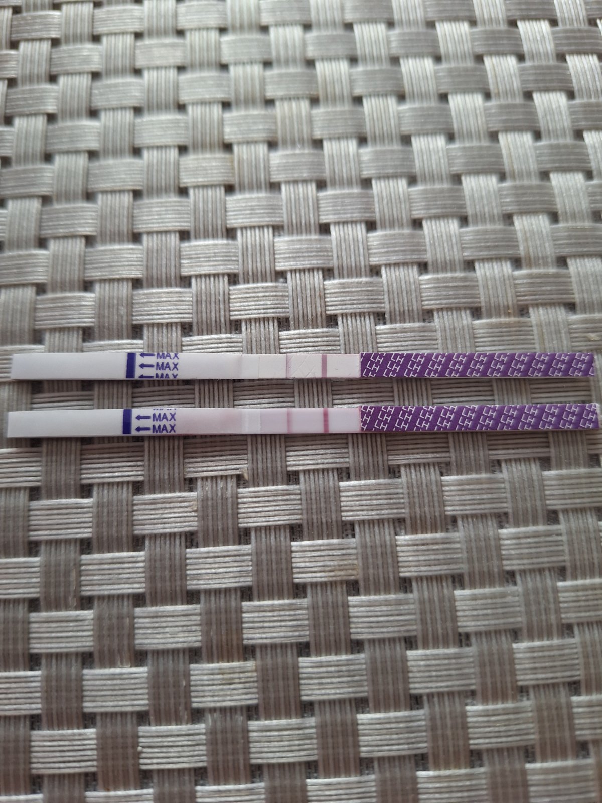 Ahoj holky, už půl roku se snažíme o mimčo a nic. Teď jsem si koupila i ovulační testy. Myslíte že toto je pozitivní ovulační test? Měrila jsem si i ráno teplotu, tak jsem měla 36.3 a ovulační test je ten horní. Dělaný v osm večer, dřív nebyla bohužel možnost.