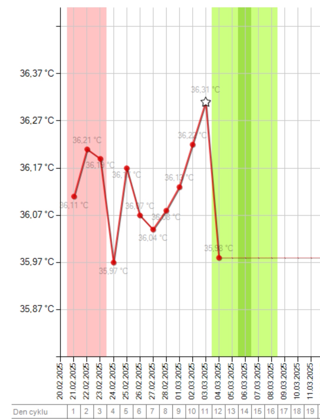 @sheilisek Ahoj, graf BT se ale vyhodnocuje nejlépe až na konci mens.cyklu, až je uzavřený. Tohle vyhodnocování v půlce může být neprůkazné. Navíc je dobré měřit aspoň 3m a pak teprve grafy vyhodnocovat, srovnávat.