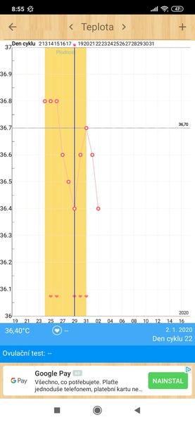 Ahojky, včera po zadání BT mi aplikace vyznačila ovulaci na 26.12. Mi se to ale nějak nezdá. Myslíte, že podle teplot ovulace opravdu proběhla?