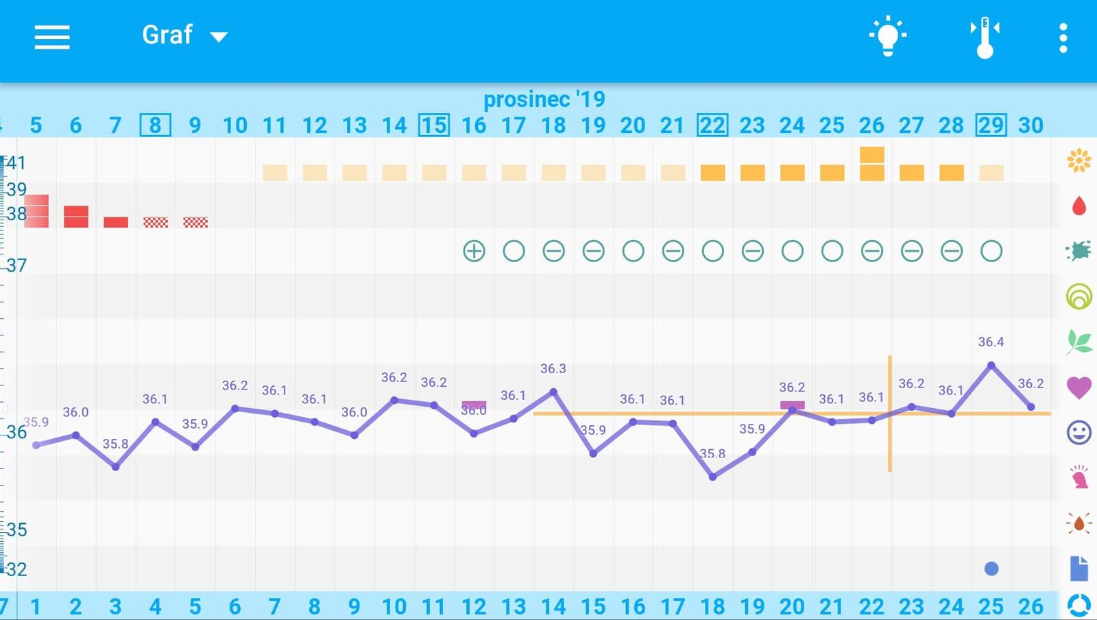 Ne. Taky mi to aplikace blbě vyznačovala, ale já k tomu dělala ovu testy, takže sem věděla, kdy ovu proběhla. Teploty před ovu jsem měla jak Ty 36,0-36,3, po ovu stoupla na 36,6-36,8. V těhotenství se teplota držela na těch 36,8 😉
