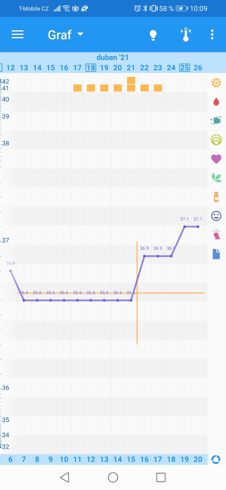 Pravidlo je přesně 3 po 6, tj. že musí být nameřené tři teploty vyšší, než předchozích šest. Aby byla ovulace potvrzená.