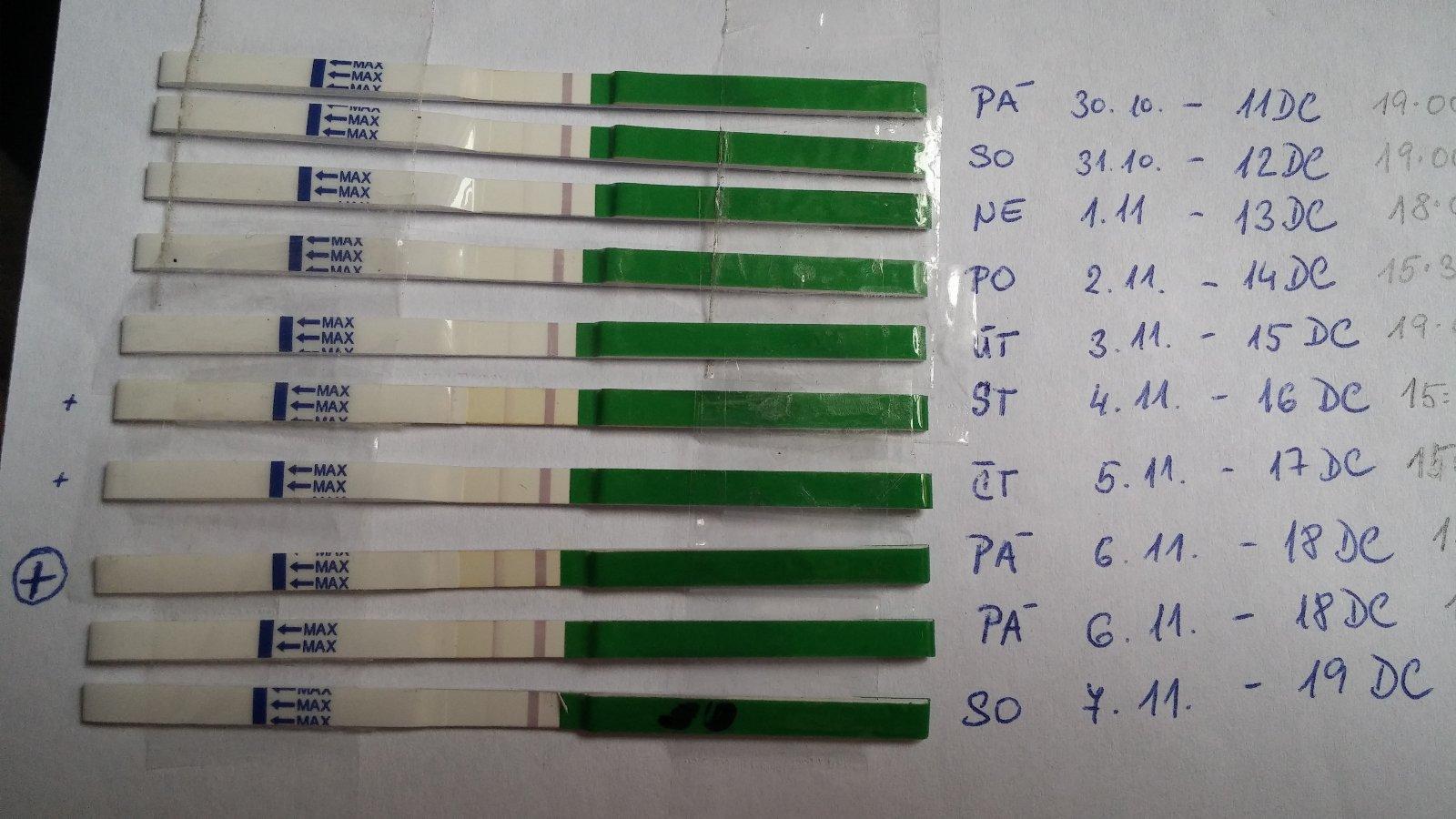 Ahoj,myslím že je pozitivní ten z 18 DC.Též jsem si dělala a měla jsem stejně silnou čárku jako ty - tedy slabší než kontrolní a otěhotněla jsem 🙂 !Myslím že taky hodně záleží v jakou denní dobu se trefíš,kdyby sis ho udělala třeba o pár hodin dřív nebo naopak později byla by čárka třeba silnější 🙂.