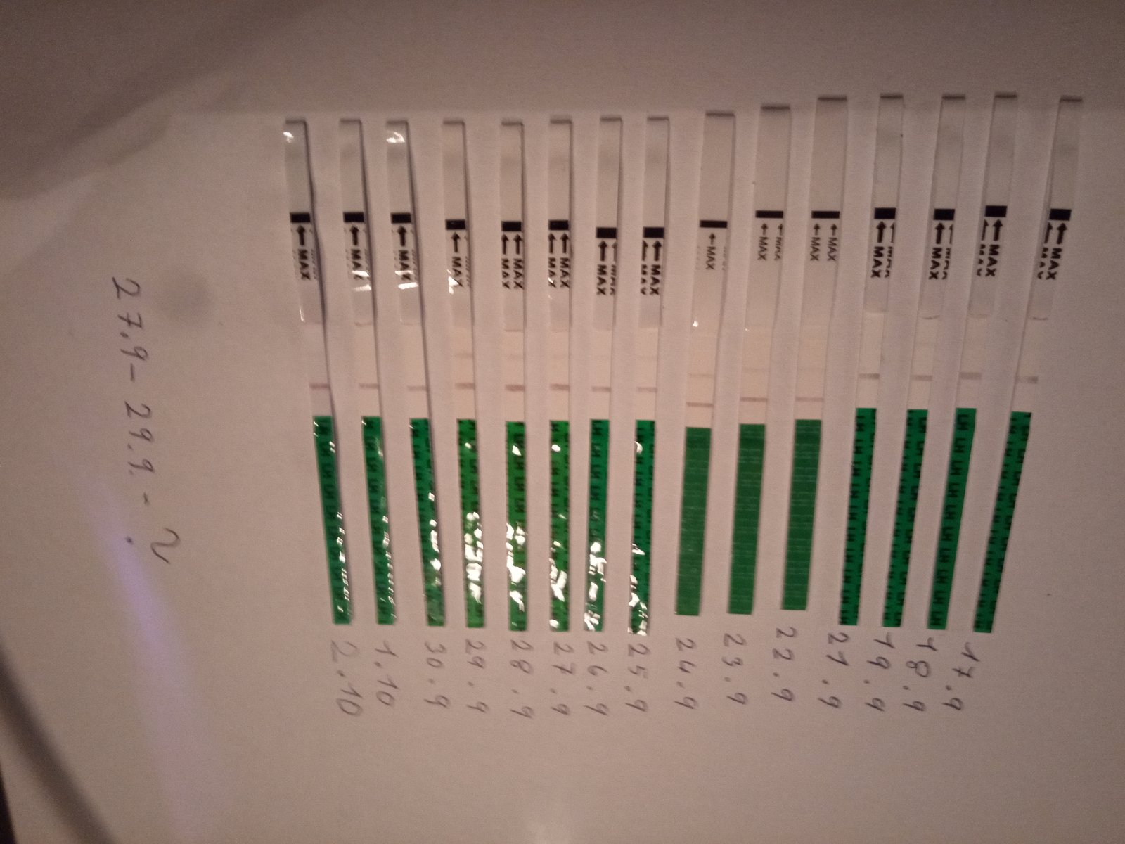 Myslím, že opravdu toho 29, vzhledem k tomu, že čárka den předtím začala trochu sílit a pak je ten téměř bílý by to tak být mohlo. Někomu se neukáže stejně silná čárka, někdo má nižší hladinu hormonu a várka se jen více zvýrazní. To ale ovšem nezaručuje, že ovu opravdu bude a proběhne. Nemám ráda diskuze, kde je vložena fotka s jasně slaboučkou čárkou, žádný vícedenní záznam, nic ... Z toho co jsi si zaznamenala se dá alespoň číst 👍 jak dlouhé máš cykly?