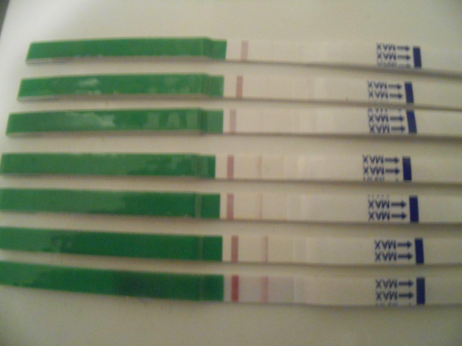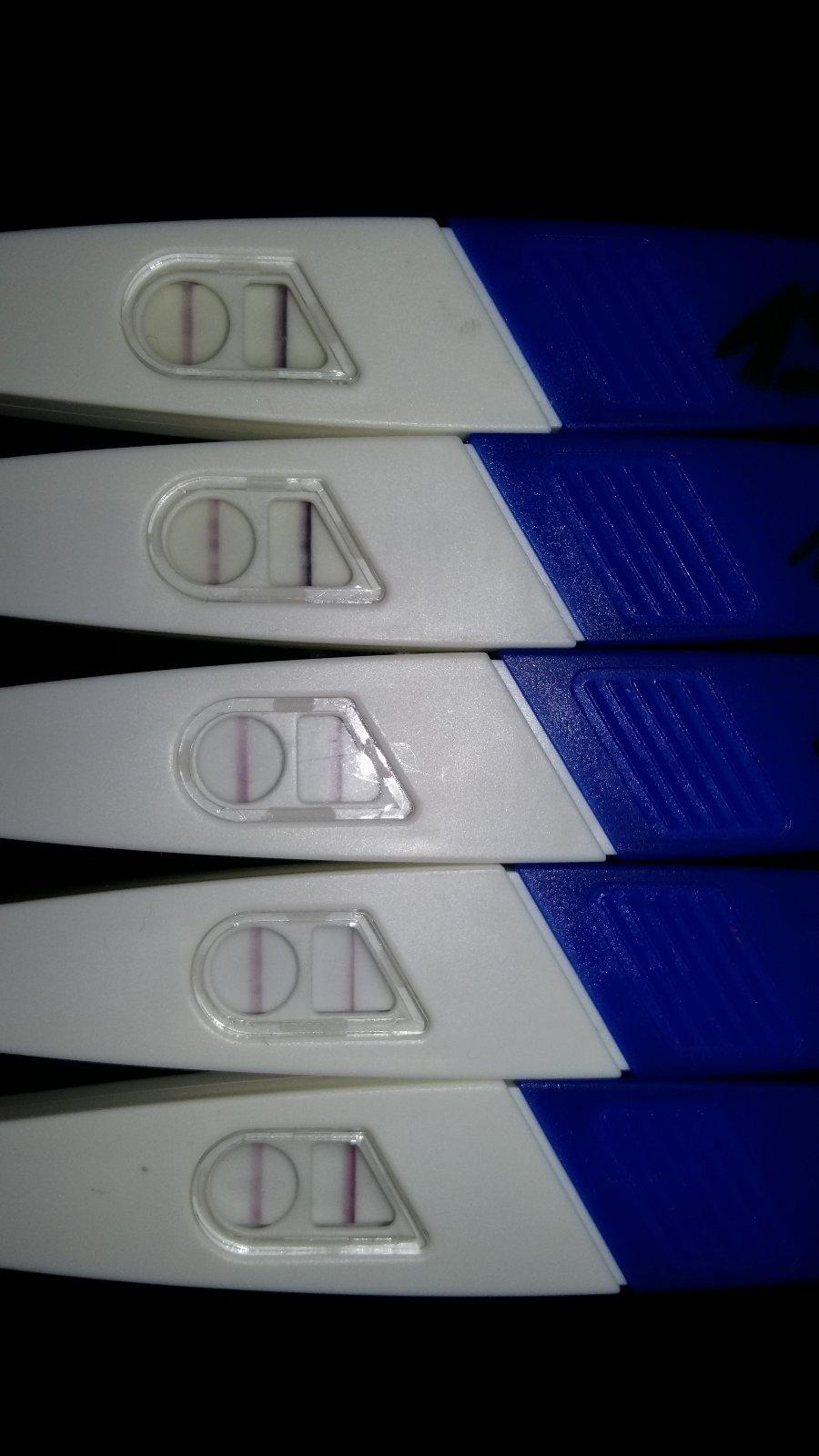 Ahoj, myslíte, že je ovulacni test pozitivní? Mám už dva dny píchání dole v podbřišku a brala jsem clostilbegyt a dnes je to 11 den od prvního dne MS. MS mám pravidelnou cyklus 28 dni, ale prý už od 11 dne od MS bych mohla mít ovulaci dříve, podle gynekologa, který mi clostilbegyt předepsal. Děkuji za odpověď. Přikládám fota ovu testů, Je ten posledni čtvrtý dole pozitivni? Děkuji za odpověď.