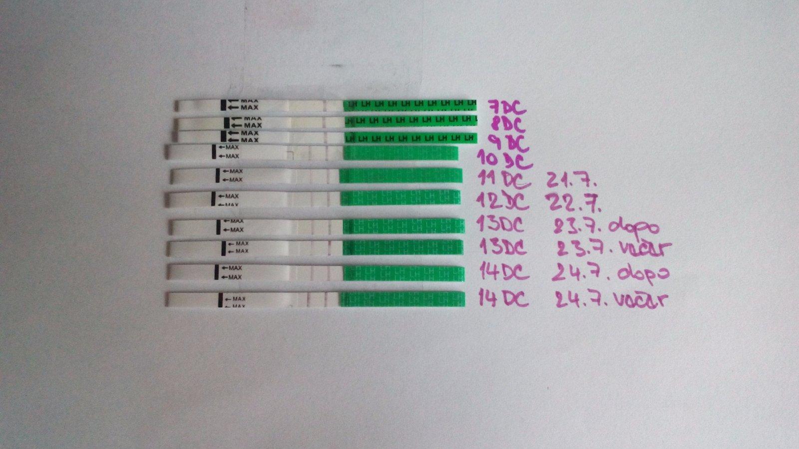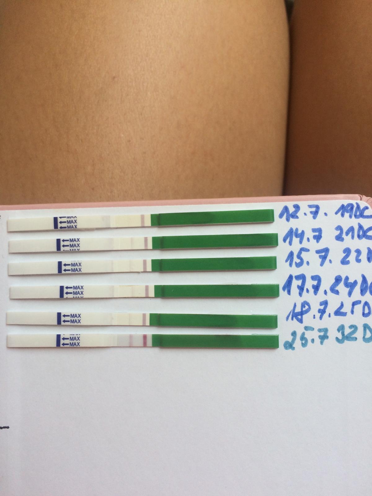 @salenas no mně právě přijde že i ten 13DC dopoledne je stejnej, je to jen světlejší protože je to focený až později a ten 13DC večer když jsem si test dělala jsem před tím dost pila, takže to může být zkreslený. Ve středu 20.7. 10DC jsem byla na utz a folíci měly 17mm a 18mm, tak je divný že by furt nic. Řekl mi že ovu bude v sobotu. No budu zkoušet dál, stejně se snažíme pořád bez ohledu na ovulaci 😀 ale jen mě to zajímalo kdy teda dojde, když jsem si nenechala píchnout pregnyl.