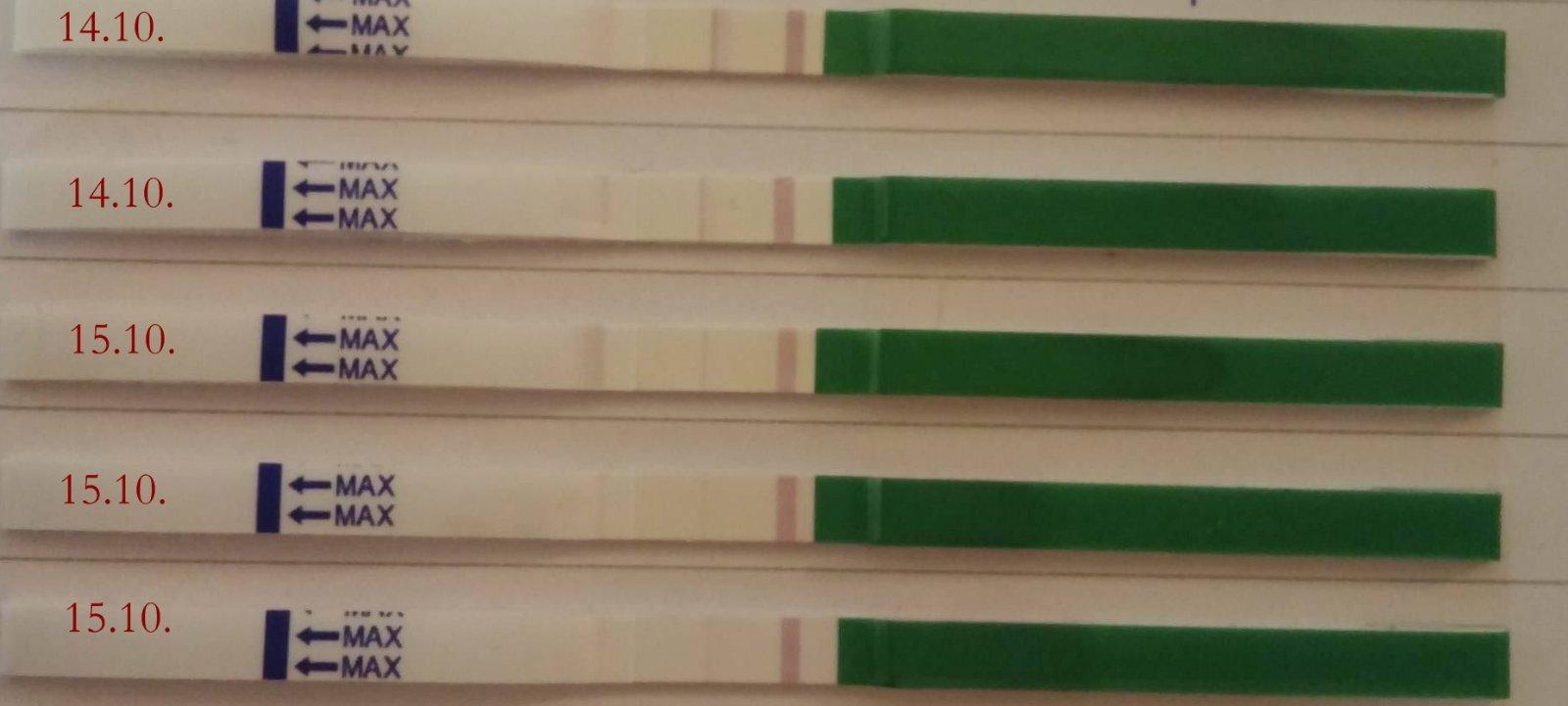 @evabeda testuju druhý měsíc a taky si je nechávám až teď , v září na nich nic nebylo, takže nebylo co porovnávat...ale teďka je to zajímavější🙂 je fajn to mít někde nalepené, aspoň cca víš, co se ti zrovna děje, pokud si to jinak nekontroluješ🙂 a taky víš časy, ovu testy se prý dělají odpo a večer, ráno tam většinou nic moc není, což je zrovna u tebe jinak🙂 já to mám viz fotka nahoře. Silnější proužek jsem zatím neměla, podle mně to ovu byla a mám o něco nižší hodnoty než ostatní, proto jsem tam neměla tak výrazný pruh..od té doby to mám stejné, jako zbytek tyčinek, furt jeden silný a druhý takový "duch". Být tebou zkouším testovat dál alespoň tento měsíc, třeba obden..já taky testuju, abych věděla, co to moje tělo produkuje a kdy, i když je to možná zbytečné🙂