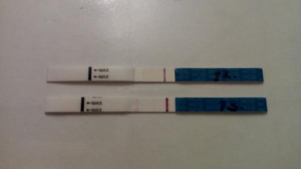 Holky vcera jsem delala test jeste v 21:00 a byla jeste silnejsi.Dneska je druha carka slaba,takze ovulka probehla asi v noci.nicmene jsme to s pritelem pojistili 🙂 podbrisek poboliva a zada taky,prsa mam citlive tak treti den..tak uvidíme za nejaky ten tyden 🙂 tady je test z dneska