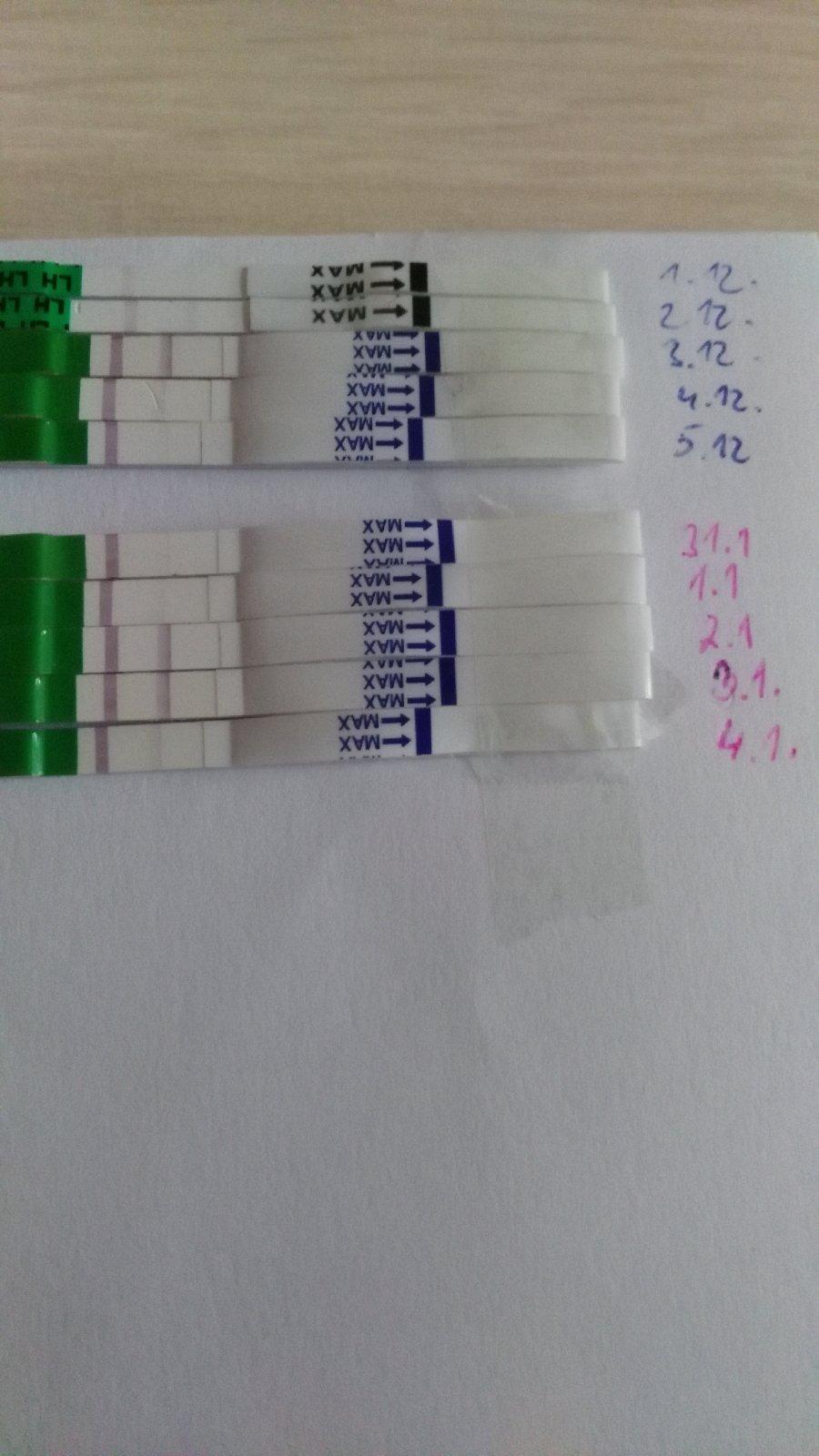 Vím,že mu ještě kousek chybí,ale nejde mi to pořádně vyfotit,musela bych na denním světle. Skoro na všech testech je slabounká čárka a na posledním chybí opravdu jen ždibík,aby byla jako kontrolní.