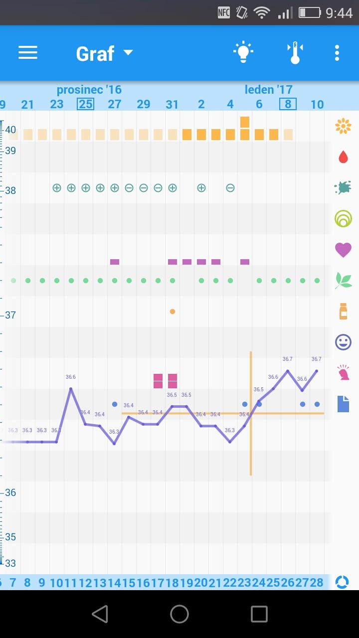já udělala pro jistotu dnes ještě jeden OVU test a je na něm jen slabounká druhá čárka. Takže ovulace je za mnou,snad mě nečeká nějaké další překvapení v podobě poklesu. Dnes 36,8