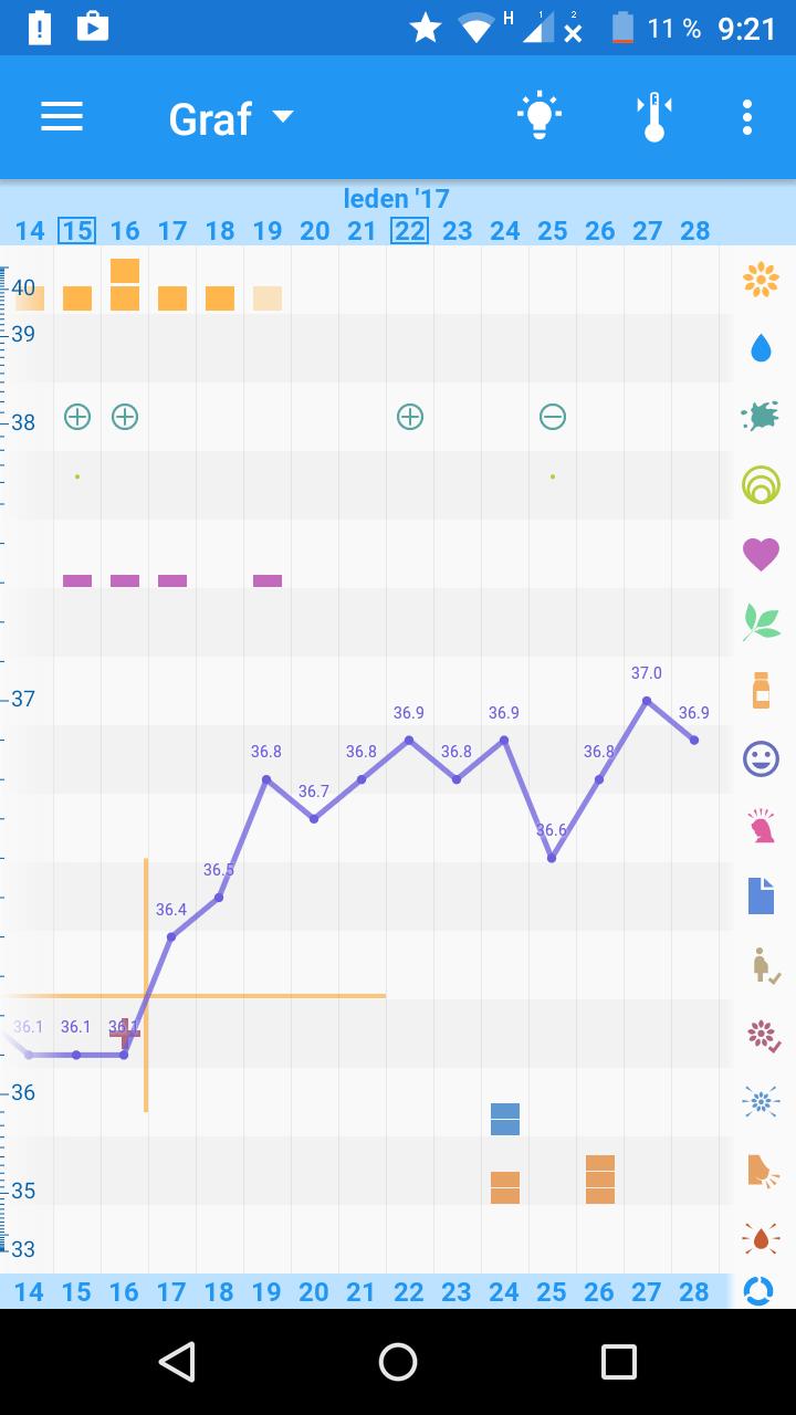 @kstablova já právě dávala dneska graf, jak jsem to měla minulý cyklus, kdy mi klesla 3 dny před ms, že se držela na nižší teplotě a pak klesla ještě více. A to jsem dva dny před ms špinila... teď ťuk ťuk nic... tak jsem zvědavá 😀