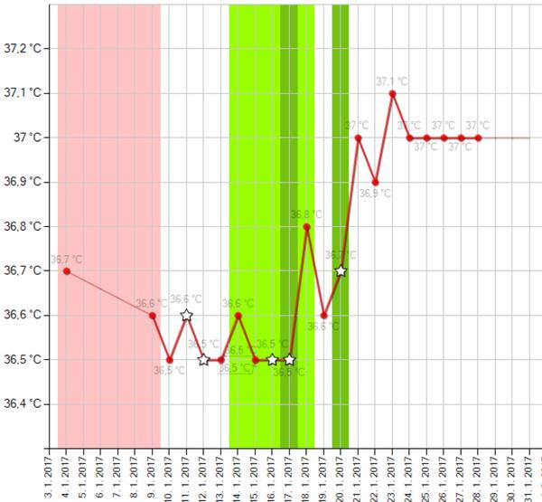 Jinak pak připočti za každou hodinku 0,1 🙂 Ale dokud neklesají, tak je to dobrý, ne? 🙂 Jen já jakmile mám za sebou stejnou teplotu pár dní, tak mi to přijde divný 😀
