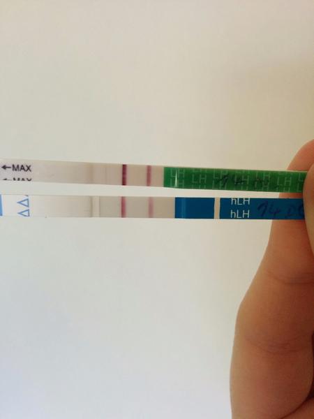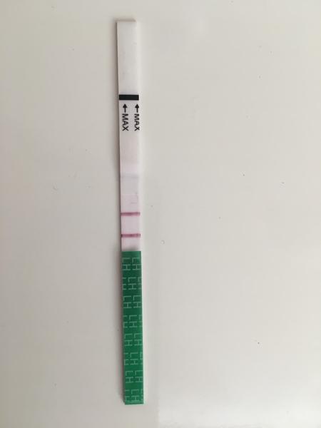 Dnes test takto, porad je hezky silný, ale uz jsou čárky stejne. Vcera odpoledne byla mnohem silnější testovací. Znamená to, ze v noci proběhla nebo bude od vcera vecer do 12-48h? Vcera velká bolest břicha k večeru, i žaludku, nebylo mi dobre, dnes uz bolí jen trochu a přidali se zase bradavky, fakt hodne bolí...