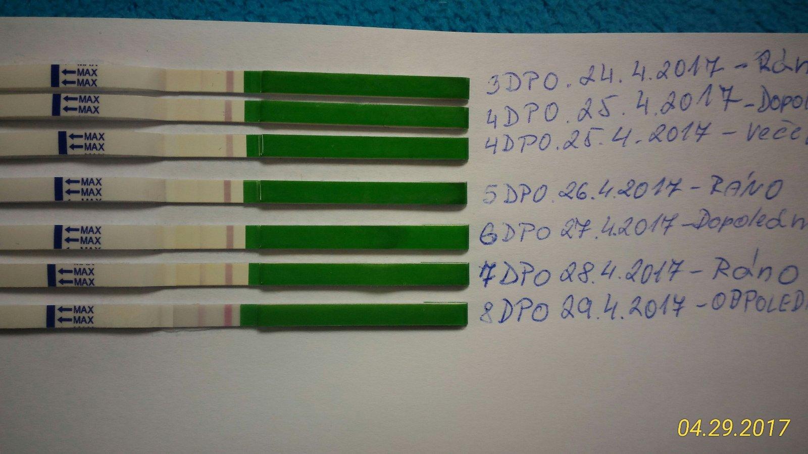 Ženy zkouším další Ovulacní testy a potřebuji poradit jestli je nějaký pozitiv. 🙂 jsem 14 DC a nějak se nevyznám. Testy od shora jdou po sobě od pondělí do dnes. Poslední dnešní je dělaný teď 🙂