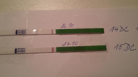 Ahoj holky, testuju tenhle měsíc poprvé, tak jsem lehce zmatena 🙂 myslela jsem si dle pocitů , že ovu proběhla 14 DC - píchal mě pravý vaječník a bylo trochu hlenu - zkusila jsem udělat test a tam úplně miniaturní dušík. Včera 15 DC mi vyšel zase duch, ale přijde mi o trochu silnější. Jen na fotce není vidět skoro vůbec, ale na živo fakt jo 🙂 Myslíte že teda ovu proběhla ještě před tím než jsem začala testovat (takže 14DC a níž ) nebo teprve bude ?