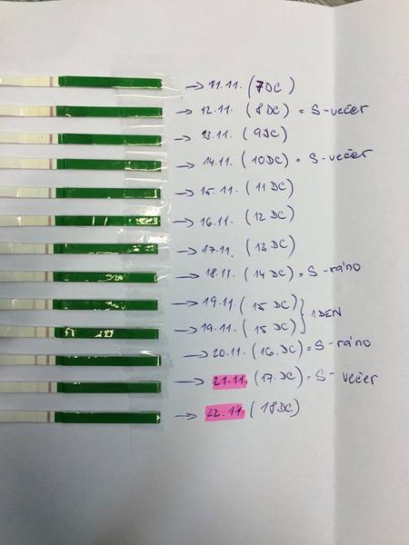 Ahojk,ypůřidavam se pro názor.Na fotkách jsou testy ovulační s datumy,posledni byl 8.11. a to jsem byla 14DC.Na té samostané fotce je z dneška,je už pozitivní? jsem 17DC a dnes jsem ale začala brát Utrogestan,četla jsem od gynekologu v poradnách,že testy neovlivnují testy,ale nemůže to nakonec ovulaci zabránit ten Utrogestan? vzala jsem si ho prvně dnes ráno a odpoledne,mam ho brát 3x deně.Děkuji za názory.JInak jsem po Agolutinu,cykly mám nepravidelné,někdy skoro žádné,proto ta vyvolávačka,beru od 25.11. přírodní produkty na vyvolání ovulace.Mam PCOS.
