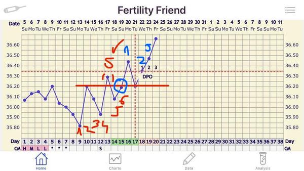 Podle grafu je dost možný, že jsi 4dpo. Hlen se objevuje většinou ještě před ovulací, zvýšení nad ostatní teploty je ten 19-20dc.