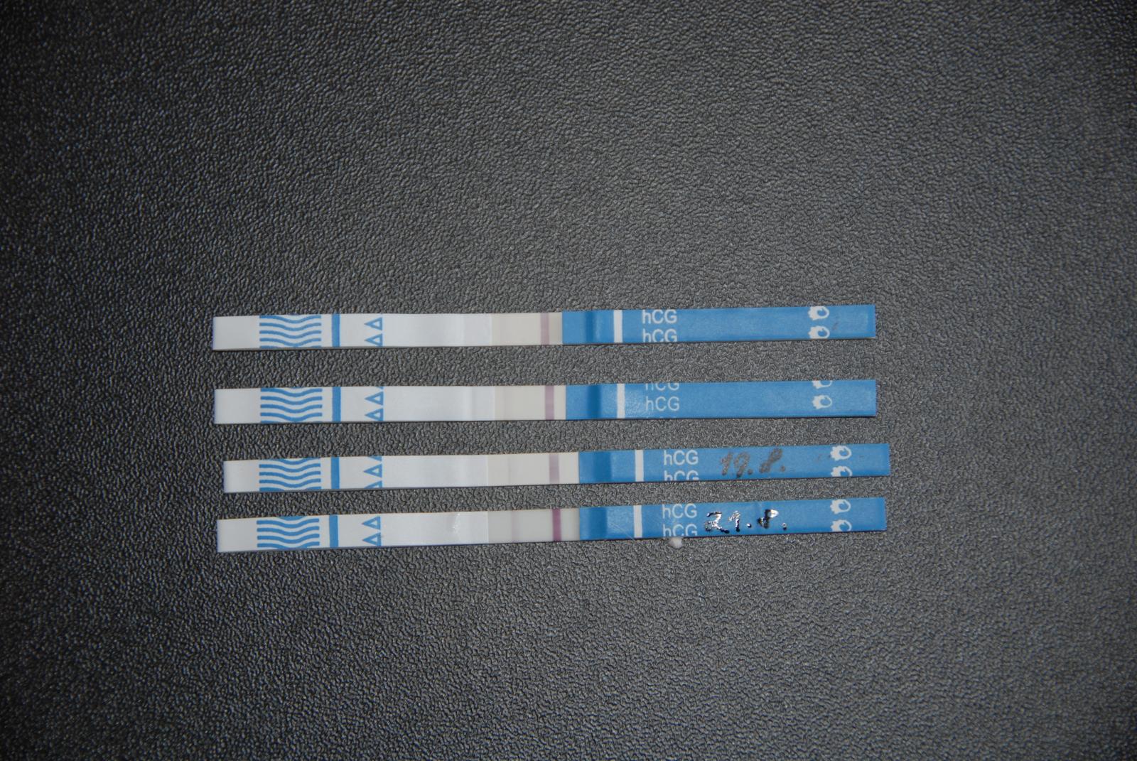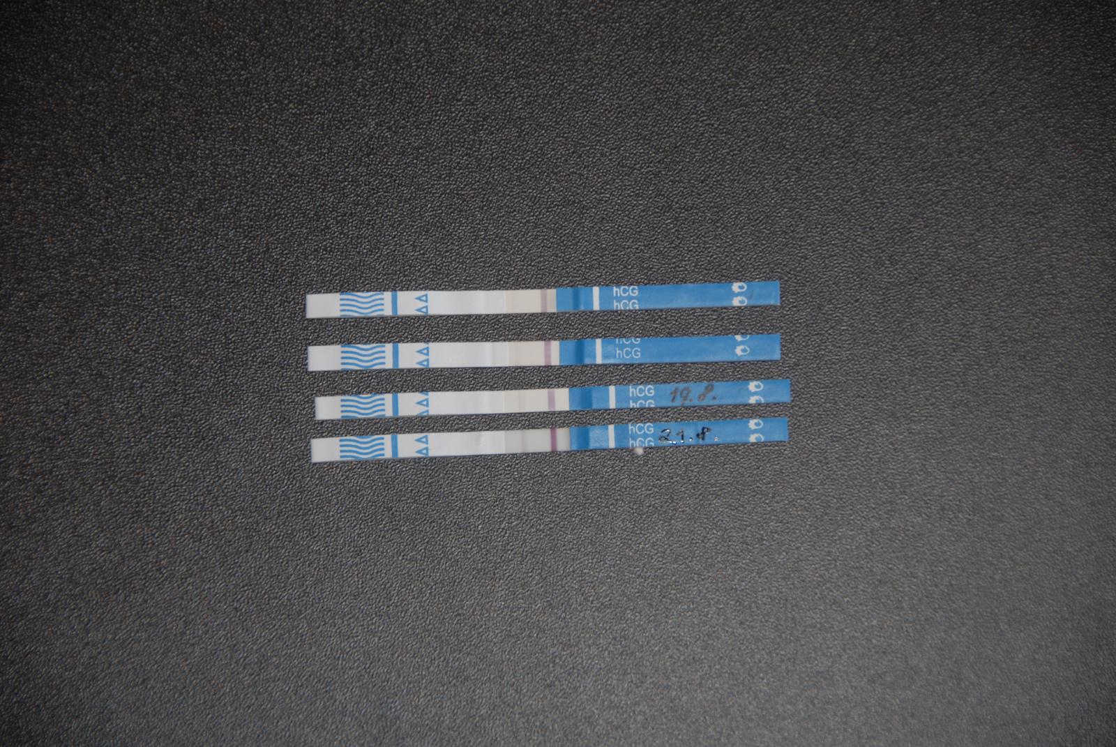 @diginka29 Dnes jsem si dělala další test po dvou dnech a opravdu se zdá, že zase o něco zesílila...zítra jedeme pryč, takže k dr. jdu až začátkem září.....uvidím, bud to dostanu nebo ne a jak bylo v plánu, tak přijdu na konci šestinedělí, to jest příští týden ve čtvrtek....jiank já byla po revizi na kontrolním odběru hcg a bylo m i řečeno, že je to negativní...myslím, že těhu jsem, teď jde o to, zda-li bude prosperovat.....zkusím během dne hodit fotečky 🙂