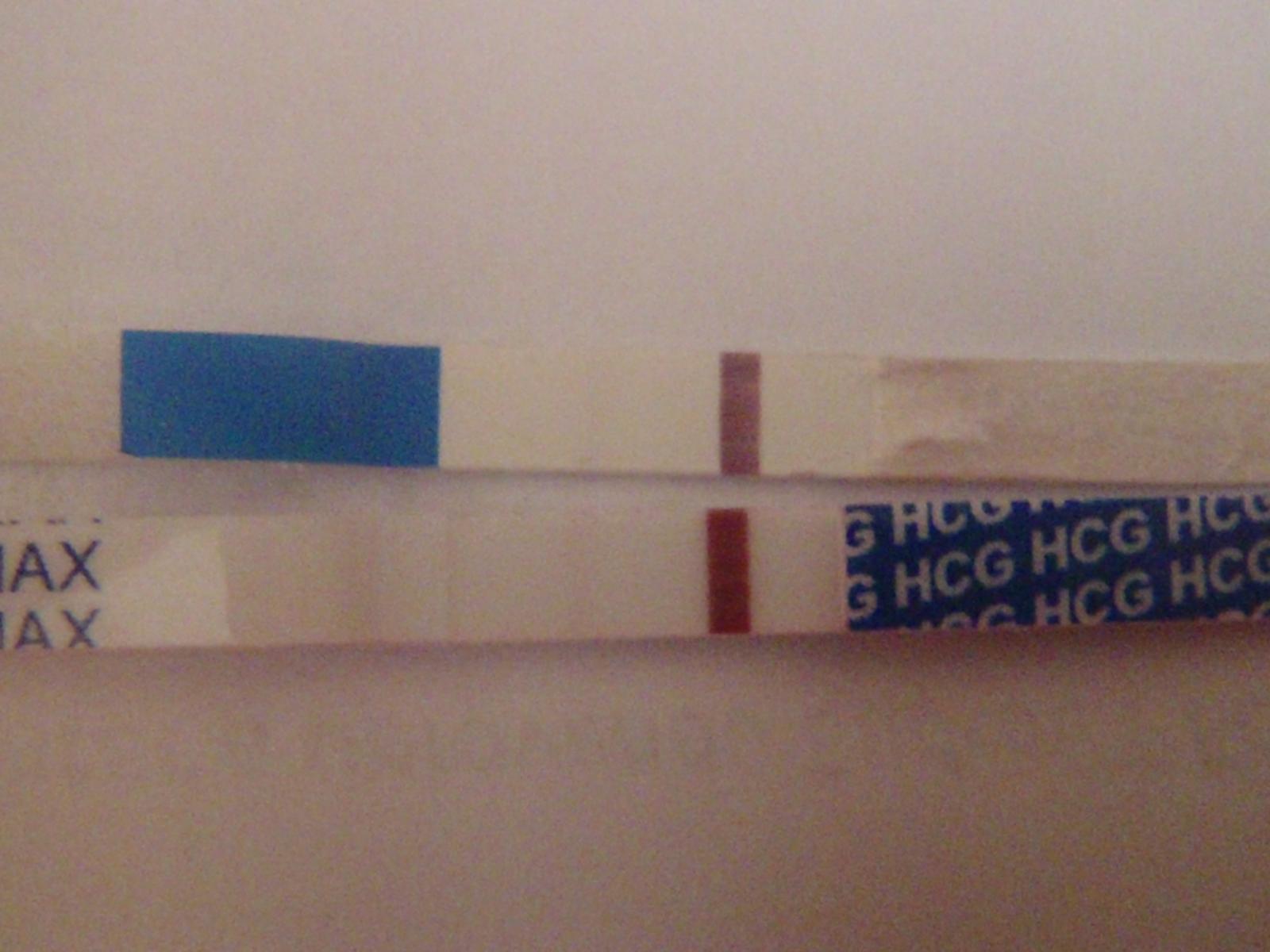 Tak holky jsem nevydržela už dnes a udělala další testy (všechny rapid clear). Horní je ráno spodní teď odpoledne a druhý je Rapid clear do proudu moči, kde je to vidět nejlépe. Tak snad to falešně pozitivní není a doufejme, že teď už budou jen sílit a nedopadne to potratem jak při posledních 2 pokusech. Nevím, jestli mám testovat nebo jít na krev každý druhý den nebo sa na to úplně vyprdnout , protože s tím stejně nic neudělám, jestli je tam zase něco špatně....