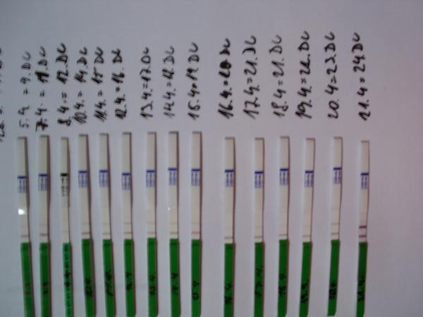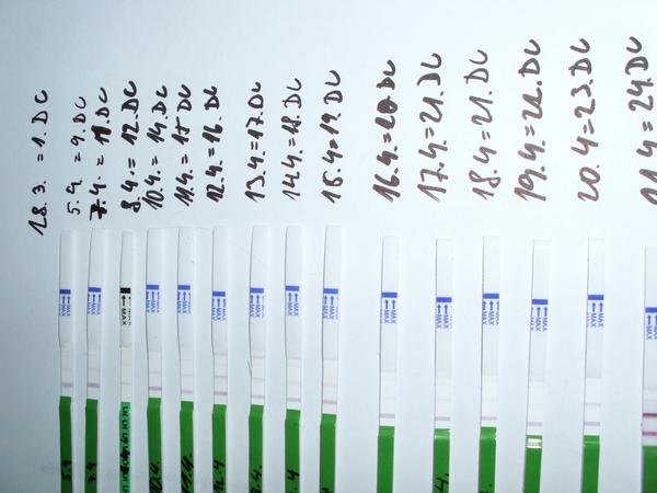 ahoj holky, vím že to sem úplně nepatří, ale do kterého dne cyklu by měla být ovulace,aby se podařilo? mám rozházené cykly v délce 30-36dní (poslední cyklus byl dokonce 40dní kvůli stresům v práci), tak jsem si dělala tento měsíc ovulační testy a výsledek mě trochu šokoval, ovulace mi totiž vyšla až na dnešek tj 24.DC - viz foto: