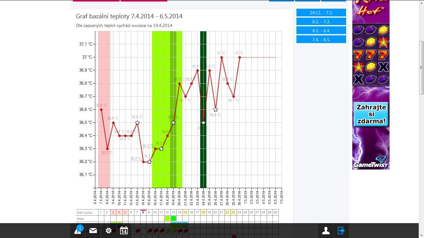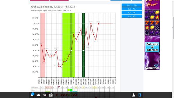 Ale zrovna dneska mám dovolenou a šprtám ve škole. Když jsem našla dnes tu nízkou teplotu byla jsem zdrcená. Včera jsem hledala tolik příznaků a nic... ale tím, že dneska šprtám, tak nemám čas přemýšlet zase nad grafem a //. teď jsem š´tastná, i když graf zatím neodpovídá mým požadavkům. Zkus se zabrat do něčeho, co ti nedovolí na to tolik myslet 😉