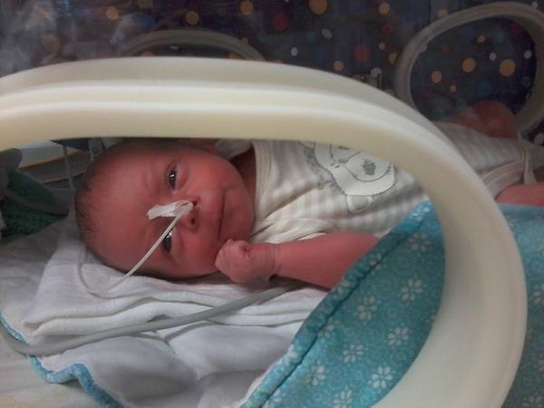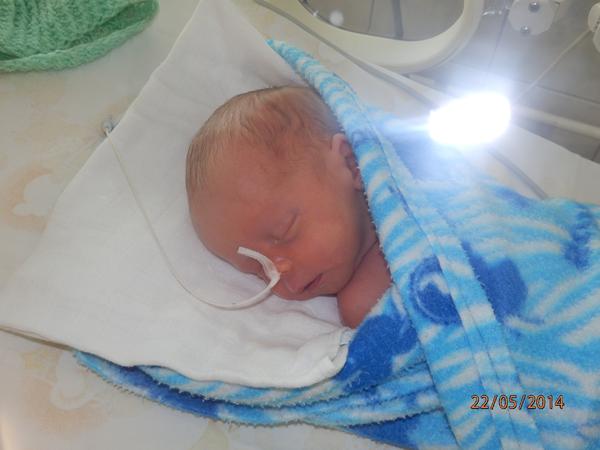 Ahoj holky,tak ten náš chlapeček si trochu pospíšil.19.5 v 18hod mi odtekla plodová voda a 20.5 v 16:10 se nám narodil syn Alešek v 35+3tt,váží 2300 a měří 44cm.Porod byl trochu divoký takže sem musela nakonec na císař.Já už jsem doma ale malý je stále v inkubátoru,musí se naučit papat.Přikládám foto a všem přeji ať máte co nejdřív také své uzlíčky u sebe.