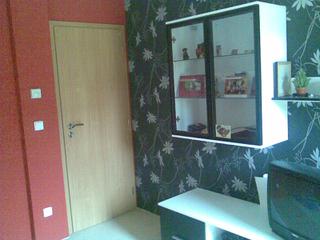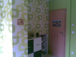 meiki-hezoučkej obývák.ta tapeta je super.když jsme bydleli v paneláku,tak holky měly v pokojíčku modro-bílej proužek(chtěla jsem taky červenej,ale už se nedělala).teď má Simona retro a katla černou s šedejma kytkama a červený zdi.jestli najdu foto,přihodím.na těch dveřích máte folii nebo co to je?