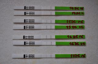 @yfka30 mě chodila ovu kolem 29DC docela pozdě...testy jsem začla dělat tak 3 dny předem a dělala jsem ráno (asi v 10) a večer (asi v 7) a ještě tak dva dny po ovu... ono kolikrát se to měnilo rychleji než kdybych dělala 1x denně...ale tady v čr jsou ty ovu testy drahé,já je kupuju na ebay.... tady jde třeba vidět, jak rychle se to změnilo...Jestli to půjde teda vidět...