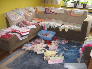 Tak holky kdyby se někomu zdálo že se doma nudím 😀 vytahala jsem věci po máje je jich přez 200 počítáno bez ponožek a čepiček a bot no mám co dělat než to roztřídím a protřídím malá šla spát tak mi do toho nebude aspoň hrabat 😀 ale je to mazec musím rovnat podle velikosti jak je to opravdu nelké cedulky buď jsou ustřižené a nebo sprané a že bych si tedy pamatovala co kdy malá nosila 😀 no druhé mimi bude narozeno o 2měsíce později a říkám si že zas třeba nebude vážit tak malilinko 2,4kg tak to bude tak nějak nastejno.