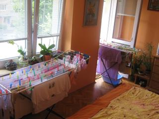 Holky já vyprala 2 pračky a už tu od rána stihlo 3x svítit slunko a 3x pršet, po tom co jsem 2x táhla prádlo se sušákem z balkonu mě došla trpělivost otevřela ono a balkonové dveře a suším, já nebudu furt to prádlo tahat ven a dovnitř 😀 😀 😀 . A dnes mi přišly další látkové plenečky 🙂 jsou bazárkové ale úplně nádherné, měkoučké a k nim jahudkové svrchňáčky 😵 😵 😵