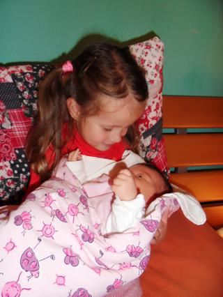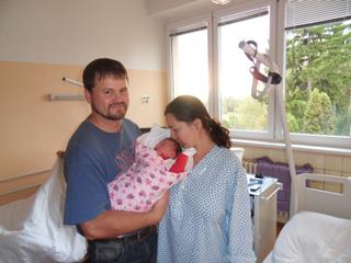 ahojky, tak konecne jsem se dostala k pc. radostne vam oznamuji, ze se nam narodila Danielka 20.10.2011 v 7,15. važila 3,470 kg a měřila 49 cm. teď jak jsme byly na kontrole, tak měřila 54 cm a vážila 4,420 kg. kapánek měla po porodu problém se žloutenkou, ale kojením a dáváním na denní světlo se to zlepšilo. porod byl docela rychlý kolem třetí ráno mi praskla voda a než jsme se dostali do porodnice tek bylo ke čtvrté a potom to slo rychle. říkávám, že to byl rychlý intenzivní porod. teď jsme v pohodě. ale jako naschvál pár dní po příjezdu z porodnice jsme všichni onemocněli. daneilka vydržela a má jen rýmu. je to zákon schválnosti. teď u adélky ve školce řádí spála a žloutenka, tak dezifikujeme 🙂.