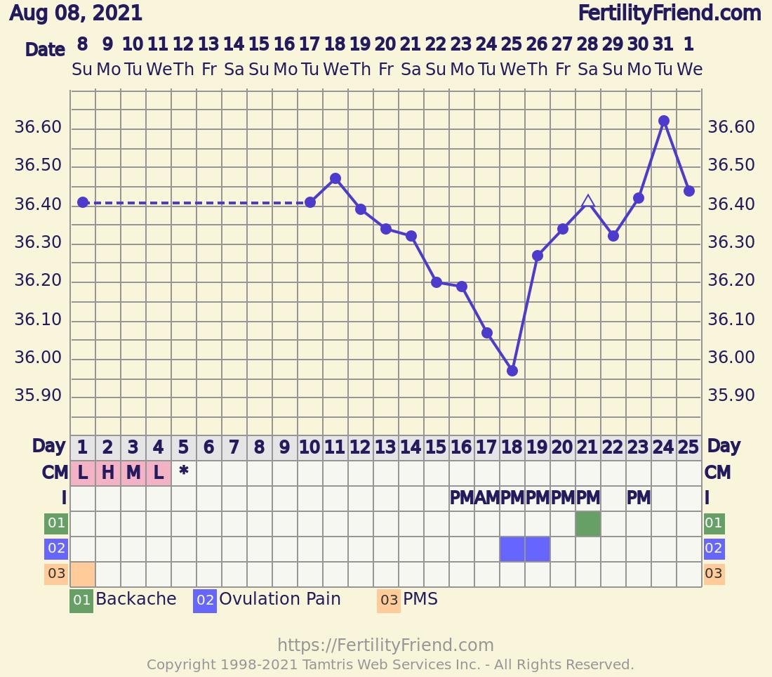 @gbp zdravím, tak se snažím další měsíc, ale přijde mi, že čím víc to miminko chceme, tím míň to vychází 😄 respektivě tenhle měsíc mi vyšel ovu test pozitivní 17.DC kolem jedenáctý dopoledne. Jenže jsme se s partnerem bohužel celý týden předtím neviděli a dostali jsme se k sobě až můj 18.dc tak jsme toho hned využili, protože chápu že k ovulaci dochází po pozitivním ovu testu cca po 24 až 48 hodinách a potom jsme to pojistili bohužel až 21dc, ale to už bylo podle mě pozdě. Jenom nevím kdy potom vlastně ovu proběhla podle teplot, protože se mi držela 4 dny na stejné úrovni a potom až hodně stoupla. Myslíš že je možné že jsme se tím jedním tulením trefili? Snažím se najít nějakou naději, když mám zase dlouhé chvíle při čekání na MS :D přikládám graf a moc děkuji za odpověď 🙂