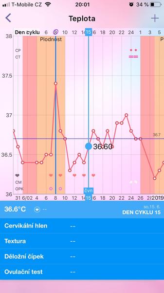 @juliemichal uvidím zítra 🙂chci zkusit zase obyčejný mamatest 🙂 právě si sama vůbec nejsem jistá, mám tenhle měsíc graf docela divoký 🙄 ale taky si osobně myslím, že jestli se povedlo, tak to je z toho 15DC🙂