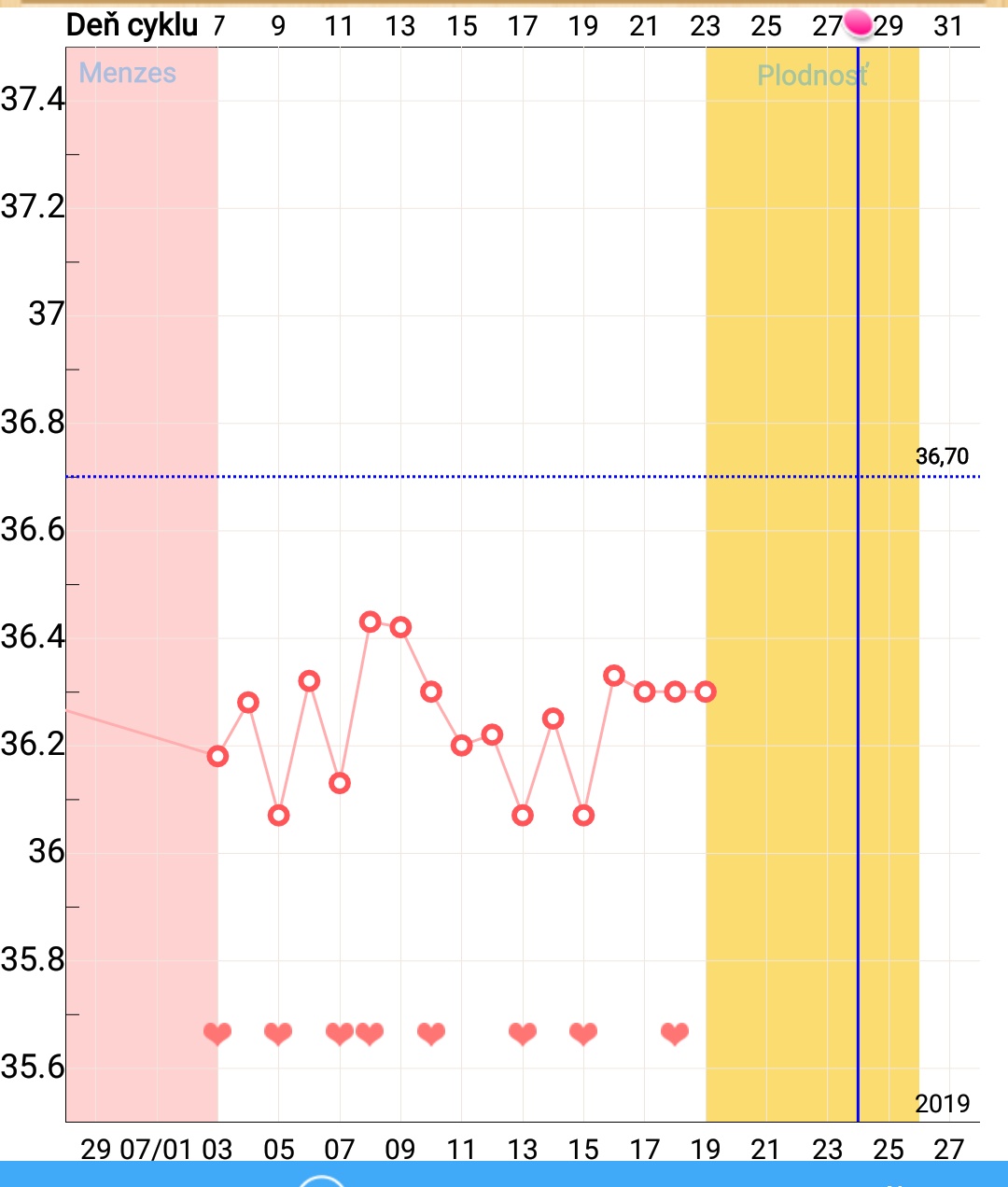 Ahojte dievcata, chcela som sa vas spytat, myslite si, ze uz bola ovulacia? Meriam si BT prvy mesiac. Podla teploty podla mna este nemala byt, ale nie som si ista. Inak posledne dnu som uz mala plodny hlien, aj obvykle bolesti brucha a aj "svoje nalady". Snazim sa teplotu meriat kazdy den cca v rovnaku hodinu, hned po zobudeny v ustach. Neviem ako si to mam vysvetlit. Pridavam aj graf s teplotami. Dakujem za rady 🙂