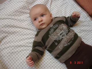 Ahoj holky! Moc vás všechny zdravím! Tak jsem si říkala, že si trochu potu, po dlouhé době, protože Damíšek mi teď usnul na gauči u kojení a vidím, že se tady velká diskuze nevede? Byla jsem včera s Matavou "kočárkovat", tak mi pověděla, co se tady děje a že se některé přesunují na facebook atd. Ten já zásadně nepoužívám, ale stejně jsem věčně nestíhací typ, takže se aspoň sporadicky ukážu tady. Jinak můj prďolka už měl 4 měsíce, za chvíli jdeme na kontrolu kyčlí a potom ještě odpoledne máme vítání občánků - představte si, že společně s Matavou! My jsme prostě otěhotněly tak šikovně současně a porodily taky jen s týdenním rozdílem a ještě bydlíme skoro u sebe. Jsou to náhodičky🙂 Musím Vám sem dát nějakou synátorovu fotku, moment, jdu něco vyhrabat... 😀